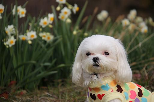 水仙の可憐さとララちゃんがピッタリだわぁ、カワイッ♪