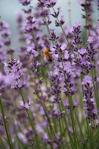 ラベンダーが咲いていて、ハチがたくさんいました。